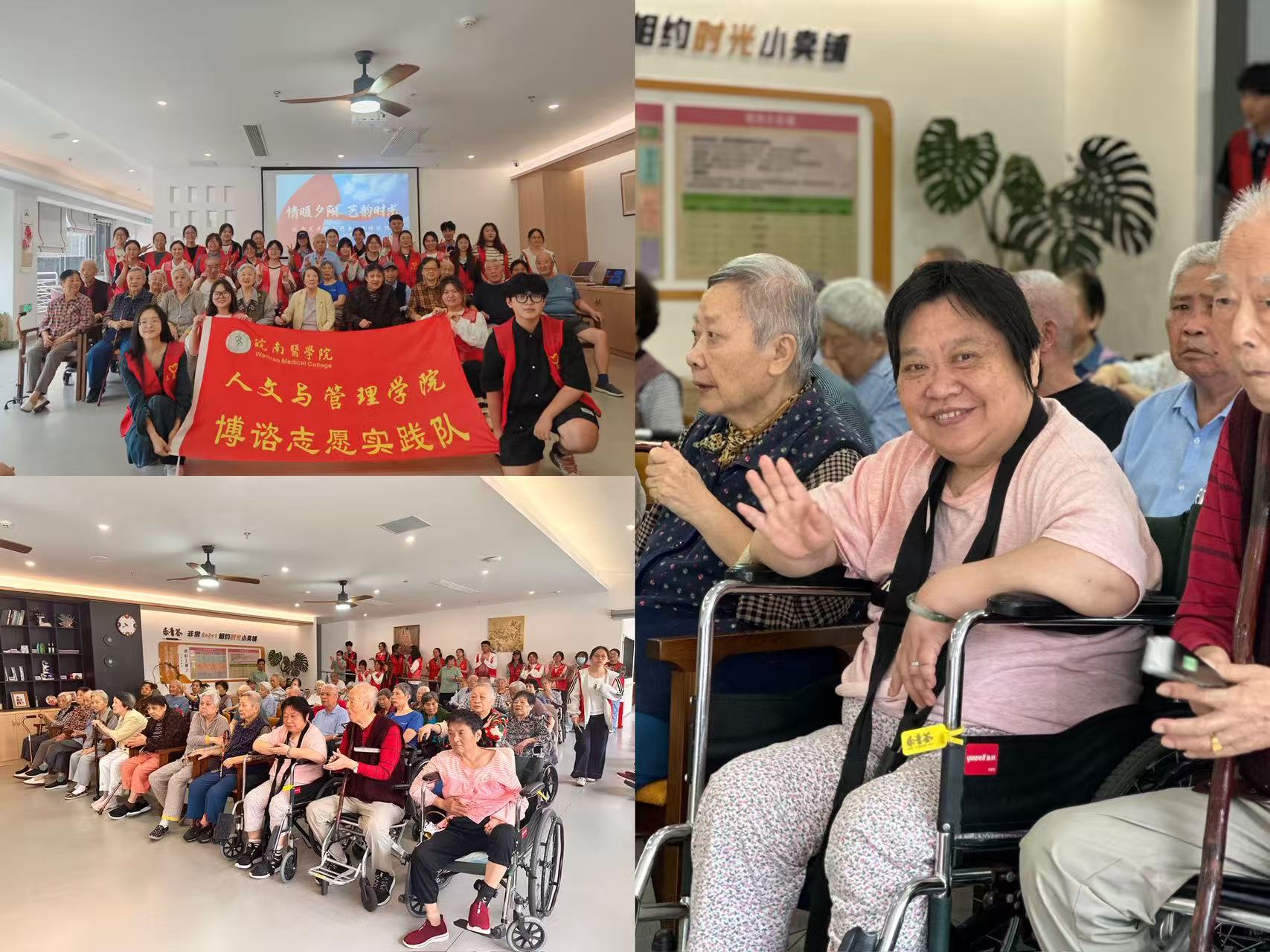为弘扬尊老敬老传统美德,10月12日上午,人文与管理学院博谘志愿实践队走进乐青荟国信颐养院,开展情暖夕阳,艺韵时光主题文艺汇演活动,为老人们送去温暖与欢乐。