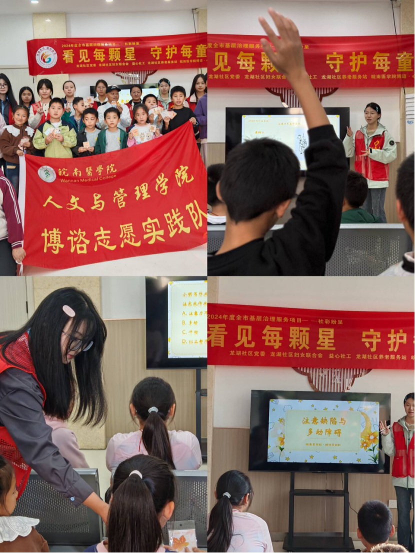 在“世界儿童日”来临之际,为践行“儿童优先”理念与志愿服务精神,11月15日,人文与管理学院深入中沟与龙湖社区分别举办“情暖童心护成长”主题宣讲手工活动以及“看见每颗星”ADHD科普宣讲活动,以多样化形式传播儿童心理健康知识。