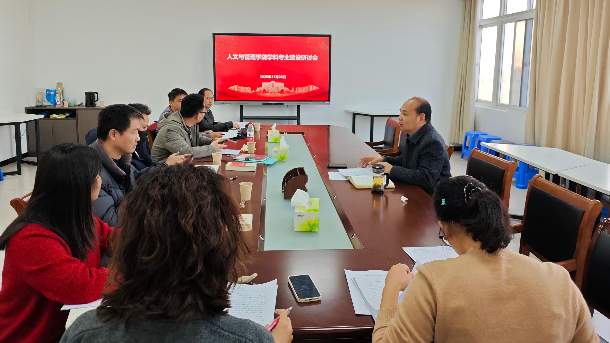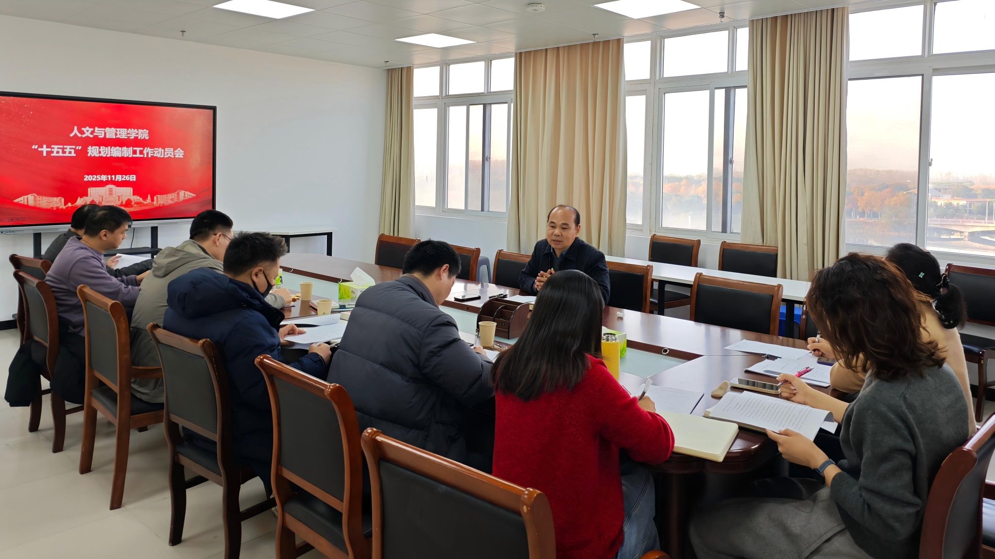 为科学谋划学院未来五年发展蓝图,持续深化学科专业内涵建设,11 月 26 日下午,人文与管理学院召开 “十五五”规划编制动员会暨学科专业建设研讨会,会议由学院院长王国平主持,各学科带头人、专业负责人参会。