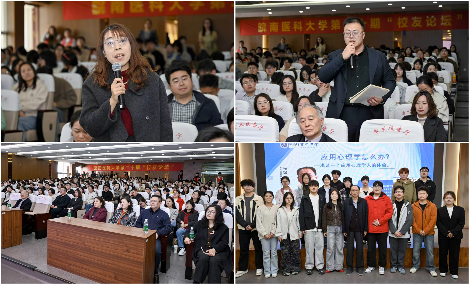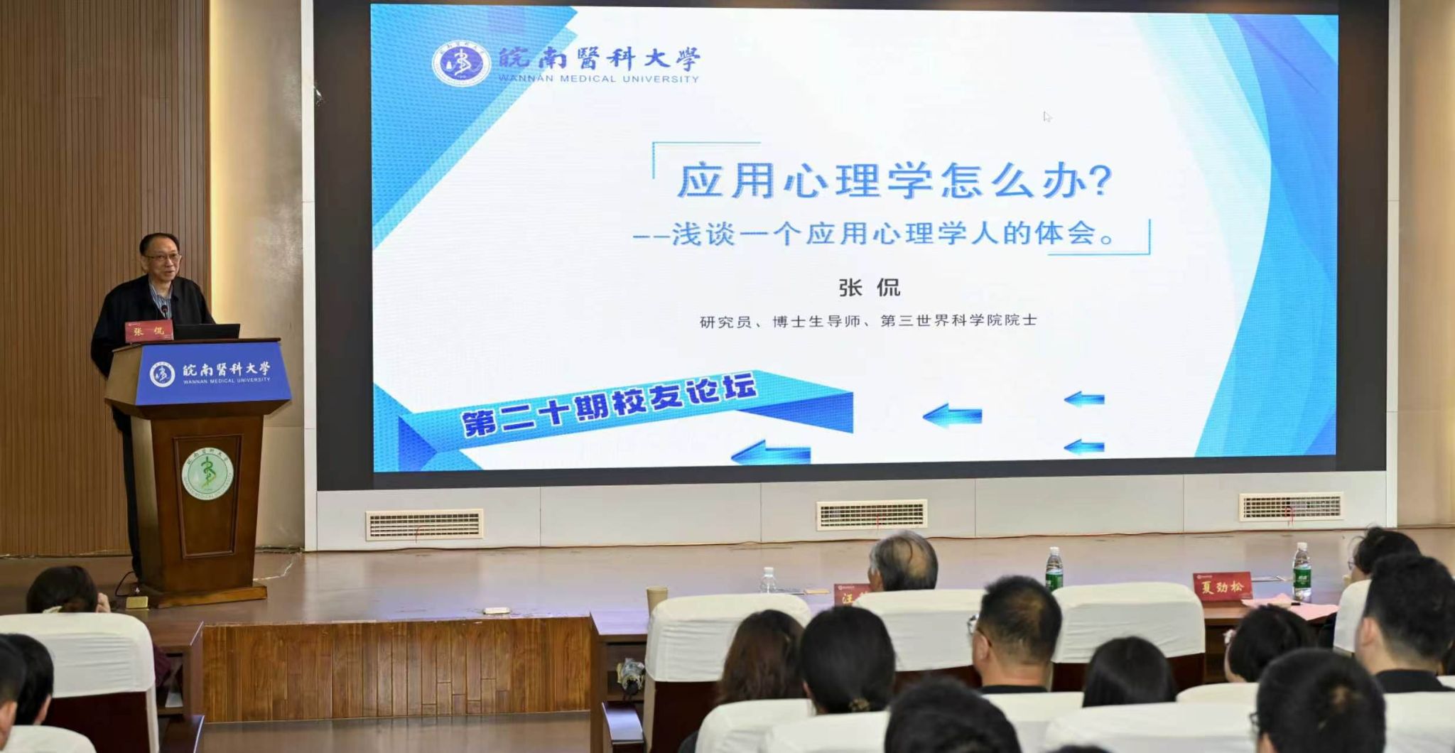 阳春三月,春意盎然,万物勃发。正值学校正式更名皖南医科大学、开启高质量发展新征程的重要时刻,3月28日下午,我校第二十期 “校友论坛”在滨江校区南区学术报告厅举行。学校1976 届杰出校友、第三世界科学院院士、中国科学院心理研究所原所长、研究员、博士生导师张侃载誉返校,以“应用心理学怎么办——浅谈一个应用心理学人的体会”为题,为应用心理学专业师生带来一场兼具学术深度、育人温度与使命高度的专题报告。校党委书记夏劲松,校友办、人文与管理学院相关负责人参加活动。