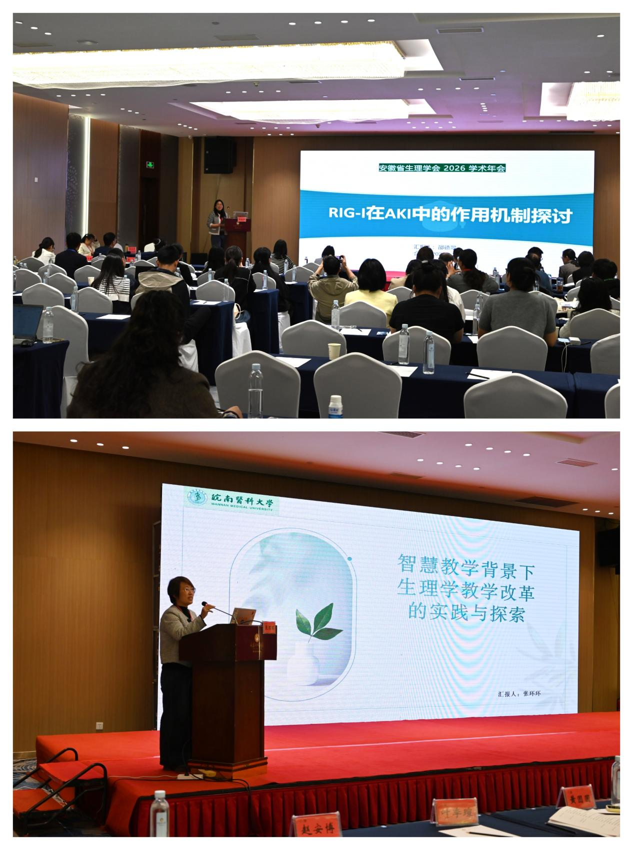 4月24日至25日,安徽省生理学会2026学术年会在合肥顺利召开。本次会议由中国科学技术大学承办、安徽医科大学协办,汇聚了全省生理学领域的专家学者、青年教师及科研骨干,搭建了高水平的学术交流与成果展示平台。我校人文与管理学院生理学团队组织教师、研究生及“启明星”本科生代表一行13人参加了本次年会。