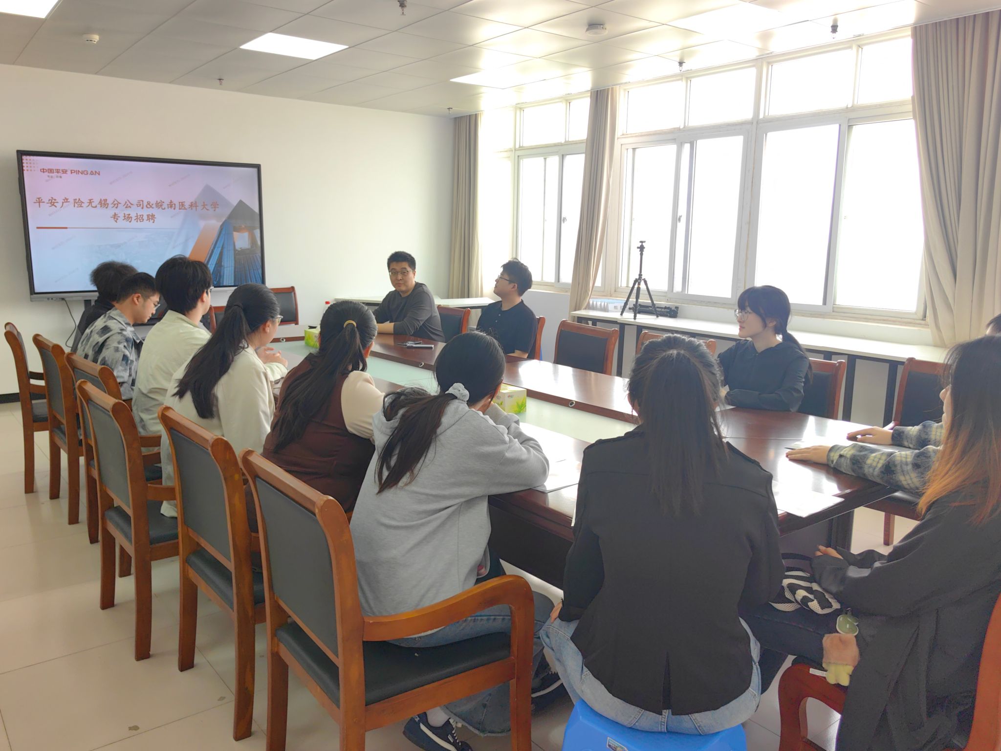 2026年4月10日下午,中国平安财产保险股份有限公司无锡分公司应邀来院,举办专场招聘会,为我院毕业生提供精准就业对接渠道。学院近20名毕业生到场参与求职洽谈。